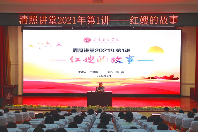 5月12日,学校清照讲堂特邀“沂蒙母亲”王换于的孙女、沂蒙红嫂张淑贞的女儿、沂蒙精神传承促进会会长于爱梅,为青年学子带来一场生动的“沂蒙精神”红色教育专题思政课。团委负责同志主持讲座,近300名师生现场聆听,反响热烈。
