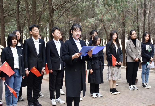 随后,学生代表杨雨萱发表了爱国主义演讲。她代表学院全体学生倡议:新时代的中国青年要学习先烈们爱国笃志、不畏牺牲的爱国主义情怀。牢记历史使命与担当,不负国家对年轻人的厚望,让青春在奋斗中升华。