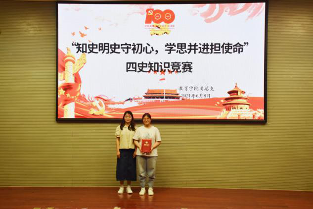 为扎实推进党史学习教育,凝聚广大青年接力学四史,真正达到“以赛促学、以学促用”的目的。近日,教育学院举行四史知识竞赛决赛,参赛选手由预赛期的554名青年经线上答题后,每班积分最高的前4人组成,共组建12支队伍。